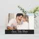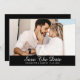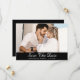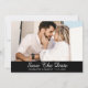 Elegantes Schwarz-Weiß-Hochzeitskartentext speichert die Datumskarten mit einem Verlobung-Foto und einem Drehbuch auf schwarzem Hintergrund. Personalisierte Schwarz-Weiß-Hochzeit speichern Sie die Datumskarten. Per personalisierbare Schwarz-Weiß-Hochzeit speichern Sie die Datumskarten. Script Hochzeit speichern Sie die Datumskarten. Save the Date schwarz-weiß.