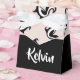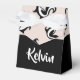 Fügen Sie Ihren Namen auf diesen schwarz-weißen Skunken auf der Rose rosa Hintergrund Muster Design.