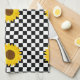 Schwarz-Weiß-Sonnenblumen Gestell der karierten Bl Geschirrtuch