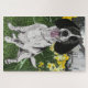 Schwarz-Weiß-Springer-Spaniel gegen Daffodien Puzzle