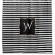 Mit Monogramm Duschvorhang in schwarz-weiß gestreiftem Muster. In einem schwarz-dekorativen Textbereich, der sich mitten im Vorhang befindet, befindet sich ein Monogramm mit weißem Single, das zur Personalisierung bereit ist. Matching Produkte sind erhältlich.