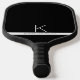 Modernes, schlichtes, schwarz-weißes Monogramm-Erstdesign auf einem personalisierten Pickleball-Paddel in einem klassischen minimalen, beruflich aussehenden, dünnen Sans-Serif-Schriftart für Ihren Namensbrief und optionale Kontaktinformationen oder Telefonnummern.
