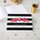 Romantische Fuchsia Floral Aquarellmalerei mit Schwarz & Weiß Streifen Muster Hintergrund Personalisiert Wedding Guest Book. Matching Wedding Einladungen, Save the Date Cards, Bridesmaid to be Request Cards, Dankeschön Karten, Gastgeschenke Hochzeiten und Geschenke verfügbar in der Blumendesign Kategorie unseres Stores.