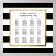 Moderne Hochzeitssitzkarte / Sitzplakat mit schwarz/weiß gestreiftem Hintergrund mit goldgelbem Rahmen - Vorlage für 12 Tische / 120 Gäste, kann für jede Gästezahl weiter angepasst werden.