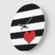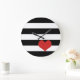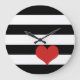 Schwarz-Weiß-Streifen mit rotem Herz Große Wanduhr