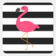 Schwarz-Weiß-Streifen Pink Flamingo Quadratischer Aufkleber