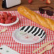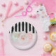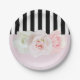 Schwarz/Weiß Streifen Rosenrosen Brautparty Pappteller