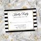 Eine stilvolle RSVP-Karte mit einem eleganten Imitat mit Goldfolie, die Ihr Event-Details-Set in schicker Typografie auf einem klassisch schwarz-weiß gestreiften Hintergrund abbildet. Personalisieren Sie Ihre speziellen Veranstaltungsdetails. Entwickelt von Thisisnotme©