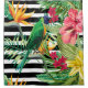 Schwarz-Weiß-Streifen und Blume und Papagei Duschvorhang