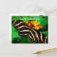 "Hallo Sunshine." Ein nahes Foto eines zarten, schwarz-weiß gestreiften Schmetterlings auf einer orangen und gelben Blüte. Genießen Sie den Sonnenschein eines warmen, sonnigen Tages, wenn Sie dieses atemberaubende, farbenfrohe Foto Postkarte schicken. Ein tolles Geschenk für jemanden, der etwas Besonderes ist!
