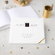 Elegantes modernes monogramm HochzeitsGästebuch in einem sauberen, modernen und minimalistischen Stil. Das elegante, monogrammatisches Emblem im eleganten Serif-Stil mit klassischen Imitaten und goldenen Streifen sorgt für ein elegantes, modernes und raffiniertes monogramm Gästebuch. Dieses Gästebuchdesign eignet sich hervorragend für ein minimalistisches und elegantes Hochzeitsthema. Die Gästebuchskarte ist komplett mit Ihren eigenen Informationen anpassbar. Sie können die Textgröße, Textfarbe, Schriftart und Layout für Ihre eigene Hochzeitspräferenz anpassen. Für dieses elegante, minimalistische, schwarz-weiße Hochzeitstil haben wir eine Auswahl an passenden Produkten.