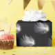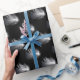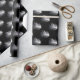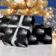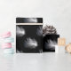 Schwarz-Weiß-Stripteppichfeder schwimmend auf eine Geschenkpapier
