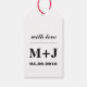 Vintage und elegante schwarz-weiße Geschenkmarke für Gastgeschenke Hochzeiten, Brautparty, Verlobungsfeier, Babydusche oder Geburtstagsparty. Dank der geschwungenen und geschwungenen Handschrift machen Sie Ihren besonderen Tag einzigartig und unvergesslich. Sie können den Text auf der Rückseite an Ihren Anlass anpassen. Schreiben Sie das Monogramm der Braut und des Bräutigams oder etwas Anderes, das ebenfalls etwas Besonderes ist.