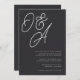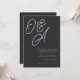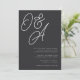 Eine schöne typografische Hochzeitseinladung mit Ihren Initialen in überdimensionalen Schriftzeichen an der Spitze. Personalisieren Sie Ihre Hochzeitsdetails in klassischen Serifenschriften, die rechts unten ausgerichtet sind. Unsere Aschenfarben geben mit knusprigen weißen Schriftzeichen auf weichem schwarzem Hintergrund einen klassischen Eindruck.