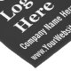 Dieser schwarze Tischrunner hat auf jedem Ende ein Display, das Sie durch Ihr Logo ersetzen können. Zwei Zeilen weißer Bildschirmtexte befinden sich unter dem Bild. Sie können den Text bearbeiten, um eine benutzerdefinierte Nachricht wie Ihren Firmennamen und Ihre Website anzuzeigen.