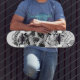 Schwarz-Weiß-Tinte Zeichnend Skull-Skate-Deck Skateboard