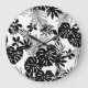 Schwarz-Weiß-Tropen: Silhouette Natur Große Wanduhr