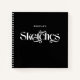Minimalistischer schwarzer Hintergrund mit weißer zeitgenössischer Typografie-Textkunst, die "Skizzen" sagt. Sie können die Farbe dieser Grafiken der digitalen Kunst, sowie die Farbe des anpassbaren Texts und des Hintergrunds ändern. Ein leeres Notebook, das für Ihre Zeichnungen umgewidmet ist.