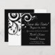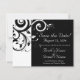 Save the Date Karte, um unsere Schwarz-Weiß-Rücken-wirl-Einladung Hochzeit, mit fett grafischer Swirl Blätter Hintergrund. Passen Sie Ihre Hochzeitsdetails online an.