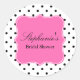 Schwarz-Weiß-Polka-Punkt mit heißen rosa Brautparty-Aufklebern. Schwarzes Polka Punktmuster auf Weiß und in der Mitte ist eine heiß rosa Form, in der Sie Ihren Text hinzufügen können.