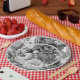 Ein Vintages Schwarz-Weiß-Blumenmuster-Teller.