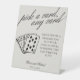 Mit diesem modernen Serif-Gast-Leseschild, das eine elegante und spielerische Atmosphäre ergänzt, können Sie Ihre Hochzeit oder Veranstaltung mit einer unterhaltsamen und interaktiven Touch ergänzen. Dieses Tabletop-Schild mit schwarzen Skript- und Serif-Schriftart auf einem warmen, kraftstoffartigen Hintergrund lädt die Gäste ein, eine Note für das Paar auf einer Spielkarte verlassen, die das Paar in Zukunft genießen kann.
