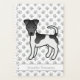 Desteis originelle Cartoon-Illustration eines Schwarz-Weiß-Mantels Smooth Fox Terrier Rasse Hund. Es gibt auch einen personalisierbaren Textbereich für einen Namen oder Titel. Der Hintergrund hat ein hellgraues Muster von Hundepfauendrucken.