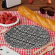 Dieser lustige und festliche Teller zeichnet sich durch ein Wintermesse-Muster auf schwarzem Hintergrund aus. Dies ist ideal für Weihnachten und den Winterurlaub.