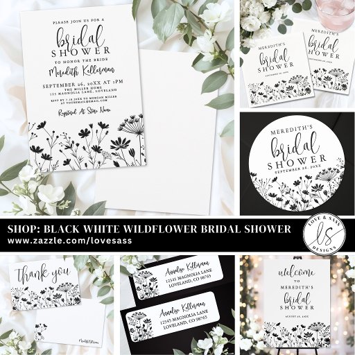 Simple Chic Black White Wildflower Bridal ShowerDesignt von Jo P.