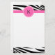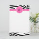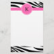 Schwarz-Weiß-Zebra-Monogramm-Druck mit Hot-Rosa Briefpapier