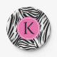 Schwarz-Weiß-Zebra-Monogramm-Druck mit Hot-Rosa Pappteller