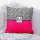 Schwarz-Weiß-Zebra-Print-Monogramm | Heiß rosa Kissen