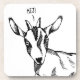 Schwarz-Weiß-zeichn eines jungen ZiegenSprichworts "Hej!". Basierend auf einer echten Ziege namens Nibbles aus Schweden.