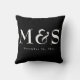 Moderne Hochzeitskissensuite für Brautpaare, die ihre Zeremonien in Schwarz und Weiß schmücken. Alles Set auf modernem weißem Schriftart mit Initialen auf der Seite.