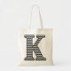 Schwarz-Weiß Zickzack "K" Monogramm Tote Tasche. Personalisieren Sie Ihre Sachen mit Ihrem ursprünglichen Stil und passen Sie die Hintergrundfarbe an, um Ihren Geschmack oder Ihre Dekoration Anzug.
