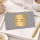 Eine goldene Metallbox aus Imitat mit Ihrem Namen oder Firmennamen zeichnet sich durch dieses Zickzack optische Schwarz-Weiß-Muster aus. Stilvoll und elegant. © 1201AM CREATIVE