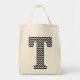 Schwarz-Weiß Zickzack Buchstabe "T" Tote Tasche. Personalisieren Sie Ihre Sachen mit Ihrem ursprünglichen Stil und passen Sie die Hintergrundfarbe an, um Ihren Geschmack oder Ihre Dekoration Anzug.