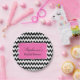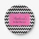 Personalisierte Schwarz-Weiß-Zickzack-Zickzack Muster und scharf rosa Hintergrund. Teller aus Brautparty. In der Mitte befindet sich eine heiß rosa Form, in der Sie Ihren Text hinzufügen können.