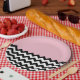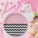 Schwarz-Weiß-Zigzag-Muster, Zickzack, rosa Pappteller