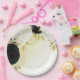 Schwarz-weiße Blume Gold Blätter Hochzeit Pappteller