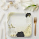 Schwarz-weiße Blume Gold Blätter Hochzeit Pappteller