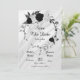 Schwarz-Weiß-Blume graue Blätter botanischer Kranz auf einem Marmorhintergrund Save the Date Einladung Die Details des Glitzer werden simuliert