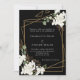 Für eine klassische Winterhochzeit. Schwarzer Hintergrund mit weißen Blume und vergoldeten geometrischen Imitaten. Personalisieren Sie Ihre Namen und Details und fügen Sie diese hinzu.