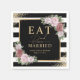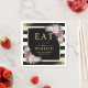 Elegante, schwarz-weiß gestreifte Servietten aus Hochzeitspapier mit rot-rosa Blume. Matching-Elemente verfügbar.