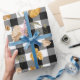 Schwarz-weiße Buffalo-Karos und gelbe Blumen Geschenkpapier