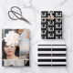 Personalisierte Packpapierblätter, die perfekt für Abschlüsse oder 16 . Geburtstag-Feiern geeignet sind, mit einer Foto-Collage, in der Sie 11 eigene Fotos hinzufügen können, einem Packpapier-Blatt mit weißen Initialen auf schwarzem Hintergrund und einer mit schick schwarz-weiß Streifen.