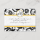 Schwarz-weiße Damask Yellow Trim Wedding RSVP Begleitkarte