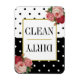 Dieses wunderschöne, elegante Design des Dishwater-Magneten zeichnet sich durch Vintage Rosen und Rosen vor einem kontrastreichen Hintergrund schwarzer Polka-Punkte auf Weiß aus. In der Mitte befindet sich ein goldgekleidetes weißes Rechteck mit den Begriffen "Clean" und "Dirty", getrennt durch eine dünne goldene Bar.