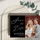 Schwarz und Weiß elegantes Script Modernes Foto Einfache Hochzeit speichern Sie das Datum Einladungskarte. Lass Familie, Freunde und Kollegen wissen, dass Sie Set ein Datum für Ihre Hochzeitsfeier mit dieser eleganten, stilvollen und modernen Hochzeit speichern Sie das Datum Einladungskarte. Alle Texte sind so vorbereitet, dass Sie sie einfach und schnell mit Ihren eigenen Details personalisieren können.