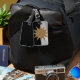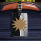 Schwarz-weiße Farbkombination und Braun Gepäckanhänger